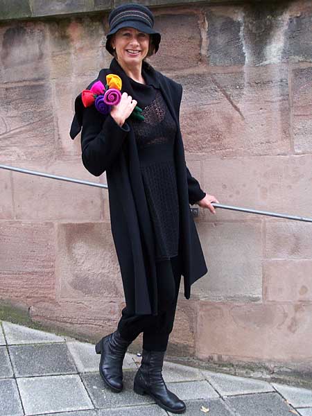 Über schmalen Mänteln und Jacken wird ein Gürtel getragen, auffällige Schals oder auch Ponchos. Lange, weite Mäntel bieten viel Bewegungsfreiheit. Kapuzen schützen bei ungemütlichen Temperaturen und sehen gut aus.
